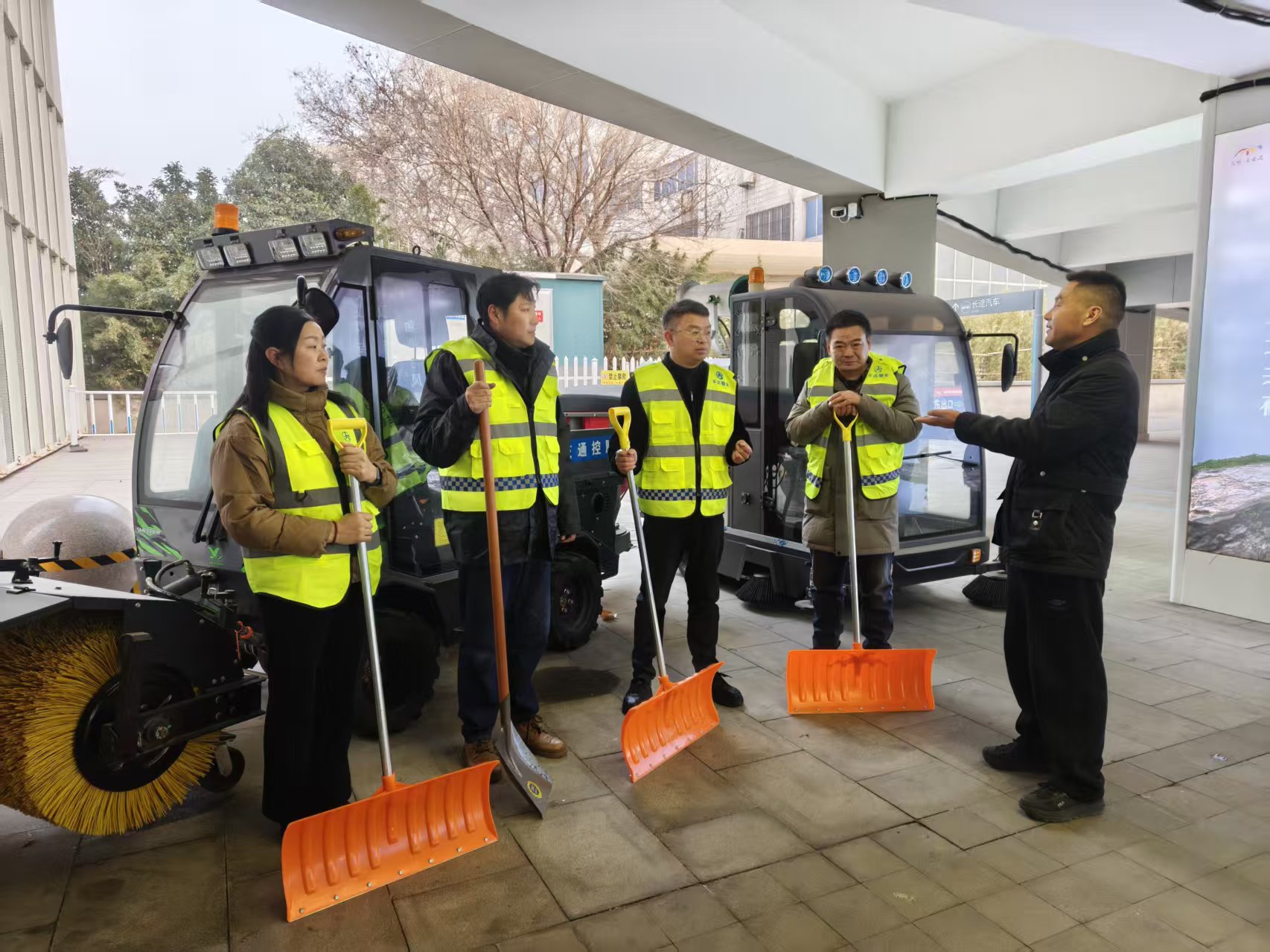 物资备足设备优,时刻待命应战。对照储备台账,全面盘点、检修各类应急物资,及时补充短缺品类,保障储备充足、分配合理。针对陡坡、阴坡等易积雪结冰重点路段,提前备足防滑料与融雪剂(储备量达6吨);同时对除雪车、巡查应急车及大扫帚、铁锨等工具集中保养调试,定点存放、即时可调。