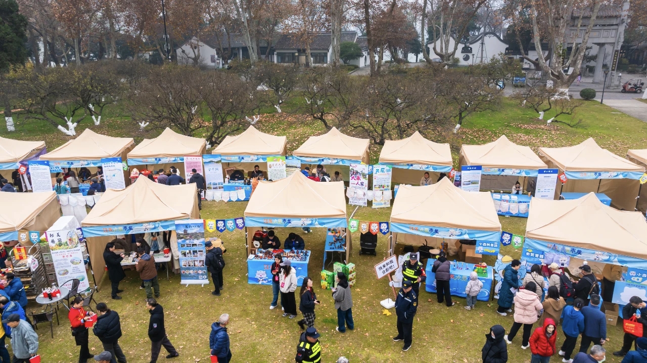 本次市集由江苏省水利风景区协会、江苏广电联合主办,汇聚全省30余家水利风景区参展。集团以特色帐篷为基底,打造滨湖气息展位,原创文创与生态产品亮点纷呈、备受瞩目。文创玩偶、滨湖风光帆布袋等凝结库区美学;活水养殖有机大鱼制成的鱼酱、罐头凭借天然品质圈粉无数。互动环节热闹非凡,关注公众号送灯笼、生态产品免费试吃等活动引得游客纷纷点赞,有游客直言:“通过这次市集活动读懂了石梁河的美,一定要实地打卡”。