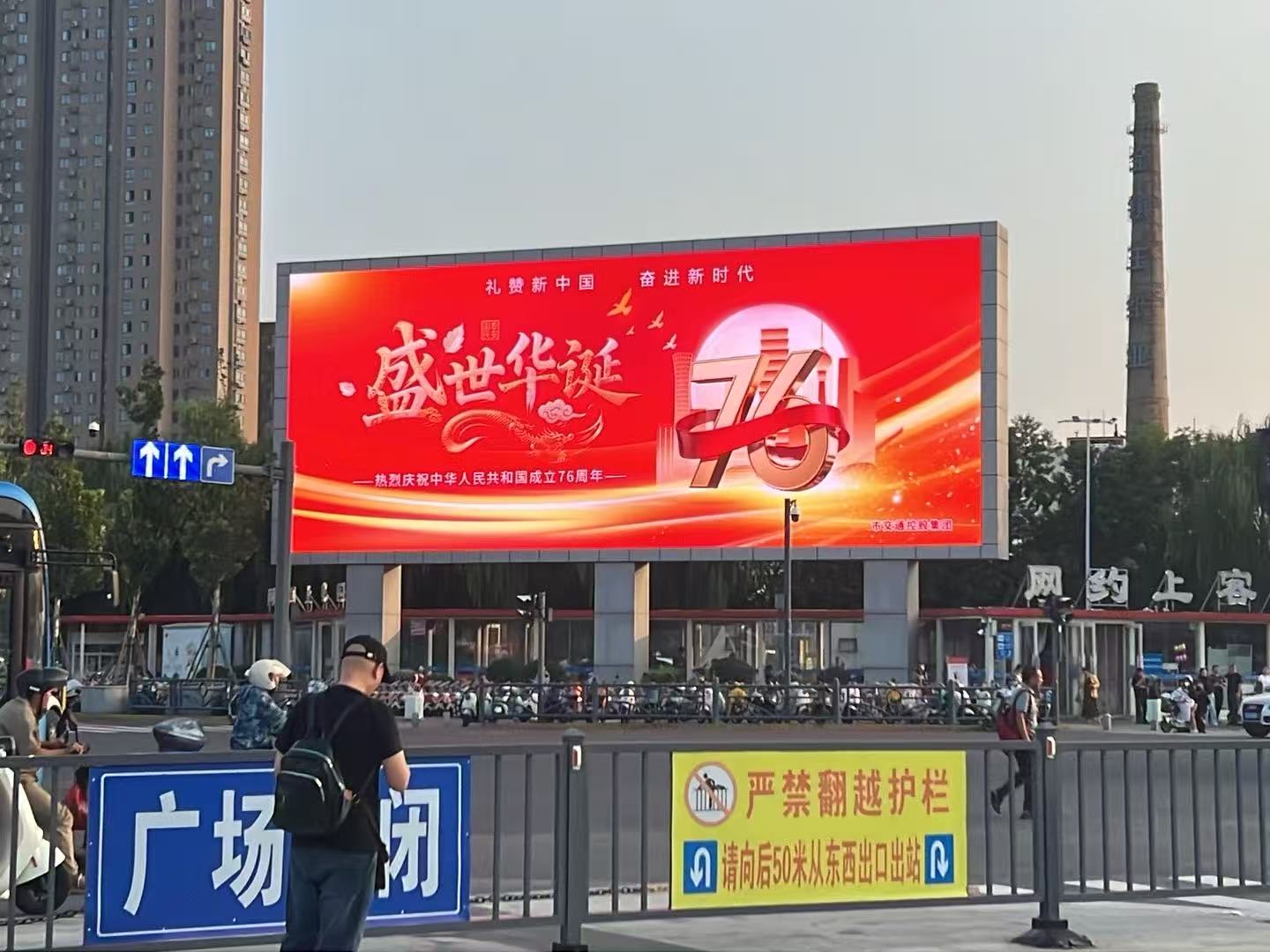 为热烈庆祝中华人民共和国成立76周年,喜迎中秋佳节,积极营造喜庆祥和、团结奋进的节日氛围,近日(尽量写具体日期),交通集团充分发挥广告宣传阵地作用,在综合客运枢纽南广场大屏及东西侧四面立柱屏等重要点位,精心策划推出以“礼赞新中国 奋进新时代”为主题的双节氛围营造宣传活动。